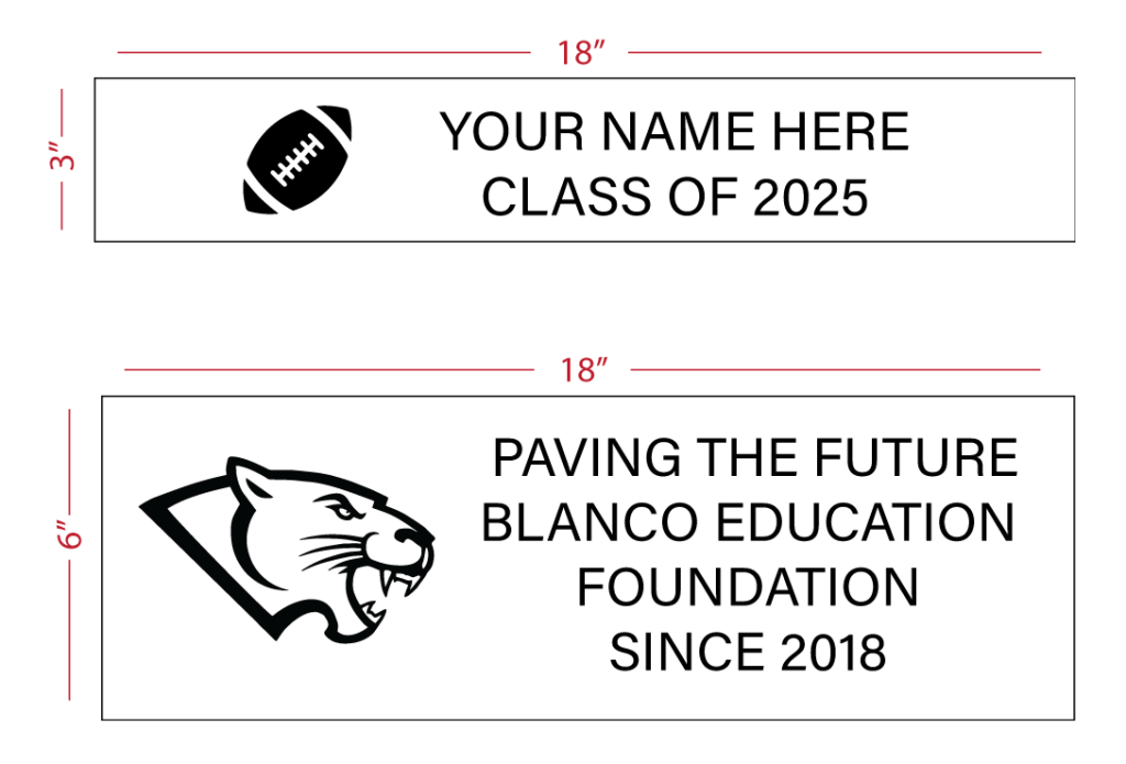 Purchase a paver and be a part of Blanco history! These pavers will be displayed in front of the new Blanco Educational Center for the Arts at the Blanco High School campus. Choose from two size options.